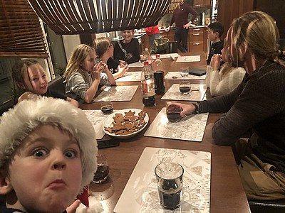 Vi åker inte bara skidor på våra läger. Denna kväll tog U12-gruppen och bakade lite pepparkakor som kvällsaktivitet.