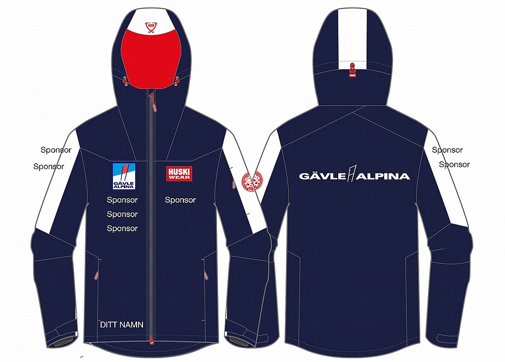 Tryckta med Gävle Alpina logo, Team Sportia samt med sponsorer för aktuellt år.